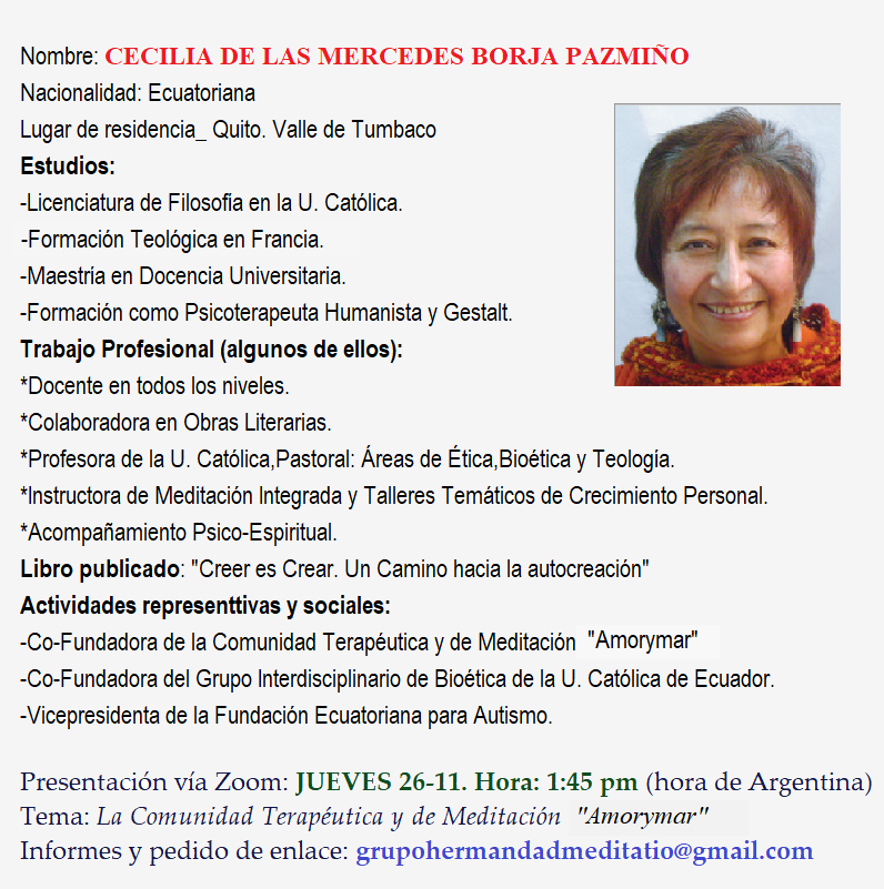 Desde el área de “Diálogo Ecuménico e Interreligioso” de Meditatio Argentina, daremos inicio a un nuevo grupo de meditación online a través de Zoom. Sigue leyendo.